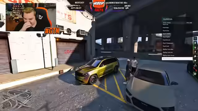 02:11:41Nach erfolgreichem Server-Connect fährt der Streamer auf dem Unity-Server und interagiert mit anderen Spielern, die ihm als 'LPCs' (Leute aus dem Chat) bekannt sind. Es kommt zu Auseinandersetzungen, bei denen er von einem anderen Spieler in einem grünen Bravado verfolgt wird. Nach anfänglicher Verfolgungsjagd gelingt es ihm, den Spieler zu rammen und das Fahrzeug des Gegners zu beschädigen, um ihm eine Lektion zu erteilen.