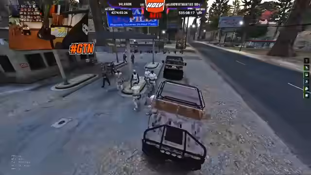 03:45:10Eine heiße Verfolgungsjagd mit einem Fahrzeug des Gegners beginnt. Der Streamer und seine Komplizen provozieren den Gegner systematisch, um ihn zu einem Fehlverhalten zu zwingen. Während der Verfolgung schießt der Gegner auf sie, was zu einer weiteren Eskalation führt. Das gegnerische Fahrzeug wird dabei schwer beschädigt und schließlich als verloren gemeldet.