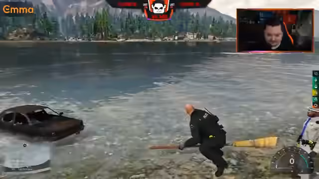 01:41:56Die SSG wird als Ansprechpartner für den Abbau von Halloween-Dekorationen genannt, wobei 20 Dollar pro abgebautem Teil vom Startkonto gezahlt werden. Parallel dazu wird eine Verfolgungsszene beschrieben, bei der ein Offroad-Fahrer von der Polizei gejagt wird. Der Streamer, der selbst in die Verfolgung involviert ist, äußert seine Frustration über die Schwierigkeiten, den Offroader einzuholen, und die Beschädigung seines eigenen Polizeifahrzeugs. Die Szene wird von Humor begleitet, da der Streamer scherzhaft vorschlägt, einen 'Hexenbesen' für die Verfolgung zu verwenden. Die Verfolgung führt über verschiedene Gelände, einschließlich Wasserwege, und endet mit der Festnahme des Verdächtigen.