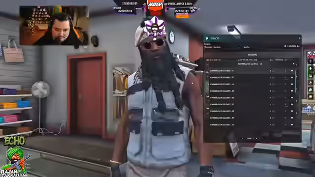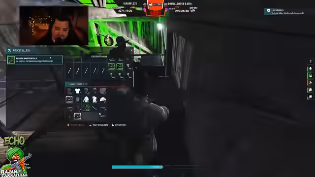 05:10:17Während der Streamer einen统一 Look für die Crew anstrebt, wählt er für sich selbst einen individuellen Stil, eine Kombination aus Maske, Kopfhörern und Leuchtschuhen. Er testet verschiedene Outfits und Accessoires, darunter Plattenwesten, und entscheidet sich für ein Erscheinungsbild, das er als seinen Markenzeichen betrachtet. Gleichzeitig wird der aktuelle Lagerbestand an Waffen und Dingen überprüft.