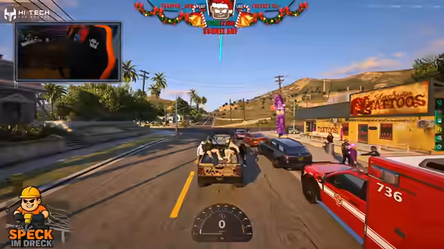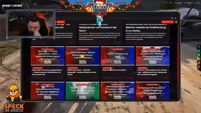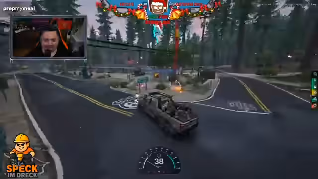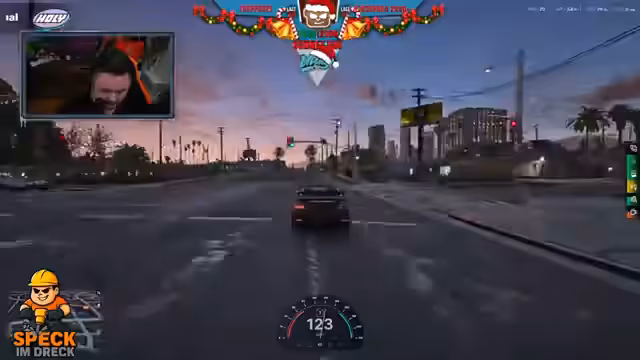 02:31:33Es wurde über eine intensive Verfolgungsjagd am Vorabend philosophiert, bei der die Polizei sehr präsent war, da bekannt war, dass der Spieler gejagt wurde. Die halbe Stadt sei hinter ihm her gewesen. Der Spieler prahlte damit, dass er zwei Helikopter (einen SWAT-Heli und einen normalen Heli), eine Speed-Unit, Hellfire und acht SWAT-Streifen „gefickt“ habe. Er forderte andere heraus, dies nachzumachen und schlug vor, eine „Ticker-Patrol“ zu machen, um zu sehen, wer vielleicht tickt. Die Abwesenheit der Polizei zu diesem Zeitpunkt wurde bemerkt.