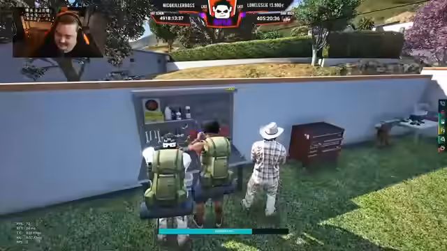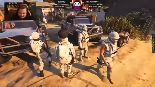 05:27:34Der Streamer gibt Anweisungen für die finale Vorbereitung der Fahrzeuge: schusssichere Reifen müssen montiert und "Sets mit Drogen" im Fahrzeug platziert werden. Er bestätigt, dass mehrere Gruppen wie MOB, Roosters und Grove teilnehmen werden und die finalen Teilnehmerzahlen um 40 Personen liegen. Er kontaktiert TX7, um ihre Teilnahme zu klären, und stellt sicher, dass alle Gruppen koordiniert zusammenarbeiten, um zu vermeiden, dass sie getrennt agieren.