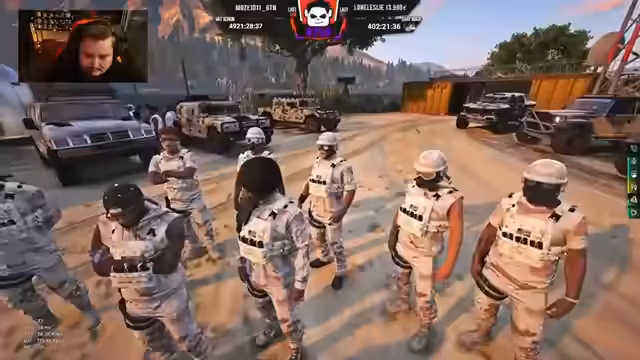 06:29:53Nach verschiedenen Änderungen der Teilnehmerzahl wird die finale Stärke der Gruppe auf 40 Personen beziffert, bestehend aus eigenen Mitgliedern, Ruthless mit 13 Leuten und 607 mit 10 Teilnehmern. Der Streamer organisiert die Zusammensetzung des Konvois, wobei einige auf der Bank bleiben müssen, da die Zahl der möglichen Plätze überschritten wurde. Er gibt Anweisungen zur Verteilung der Rucksäcke und stellt sicher, dass alle für den Einsatz bereit sind.