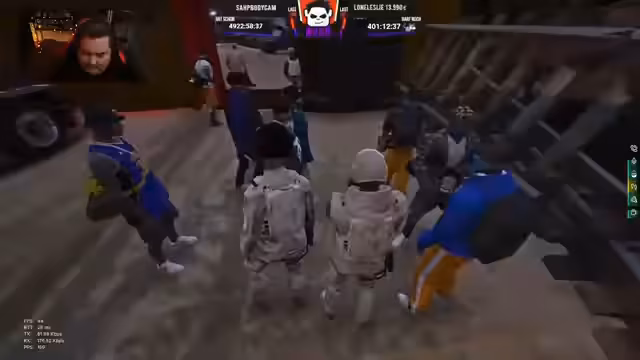 08:05:27Nach dem Konvoi-Ereignis wird die Verteilung des erbeuteten Guts organisiert. Die Gruppe beschließt, dass Clown-Waffenteile vollständig an die Mitglieder gehen und im Inneren aufgeteilt werden sollen. Dabei stellt sich die Frage nach dem Besitz und dem Verbleib eines kaputten Tailgaters und des LKWs. Es wird diskutiert, ob ein LKW-Fahrer für die Abholung gerufen werden muss, um den Konvoi verlassen zu können. Der Streamer bittet um Feedback aus dem Chat zum aktuellen Thema, da er sich ablenken ließ.