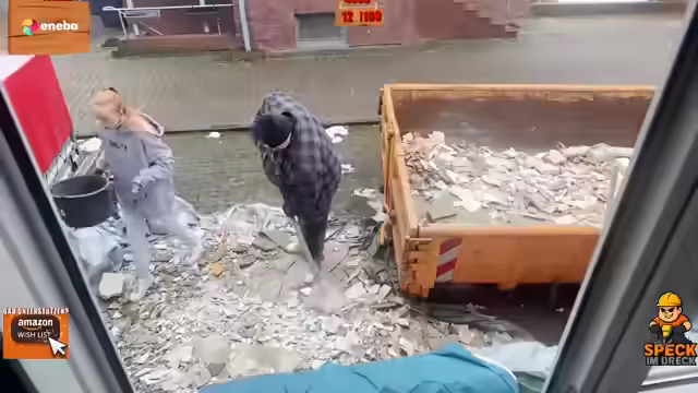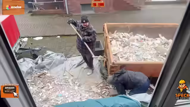 00:42:12Auf der Baustelle geht es ans Eingemachte. Ein großer Container für den Schutt wird erwartet, dessen Anlieferung jedoch einige Zeit in Anspruch nimmt. Die hauptsächliche Aufgabe besteht darin, eine alte Plane anzuheben und den darunterliegenden Schutt in den Container zu schaufeln. Der Streamer beschreibt diese Arbeit als nervig und anstrengend, da er allein ist und schwere Materialien bewältigen muss. Er stellt fest, dass die Temperaturen zwar milder geworden sind, aber die Arbeit dennoch sehr anstrengend ist und viel Kraft kostet.