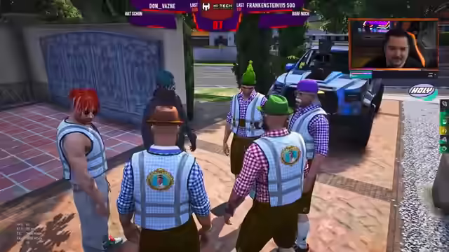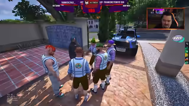 04:53:30Nach dem Diebstahl eines Ausweises in Franzöwanien durch einen 'Polen' in einem Polo, kam es zu einer Verfolgungsjagd mit einem Karakara 6x6 und sechs Tatverdächtigen. Die Situation eskalierte, als der vermeintliche Täter, der sich als das Opfer ausgab, einen Beamten mit einem Messer angriff und versuchte, mit dem Fahrzeug zu flüchten. Er wurde jedoch gestellt und entwaffnet. Der Streamer thematisiert die Ungereimtheiten und die Frage, warum ein gewisser 'Monsieur Armstrong' involviert war. Es wird die Frage aufgeworfen, warum Armstrong den vermeintlichen Täter ansprach und sich gut mit ihm unterhielt. Der Ingame-Charakter des Streamers befindet sich in einer Zelle und erholt sich vom Oktoberfest, während im Hintergrund Halloween-Kostüme vorbereitet werden. Er hat Tacos und Bubble-Tea dabei, lehnt einen Anwalt ab, da er nichts getan habe, außer herumzustehen und zuzusehen. Er betont, dass er sich nicht in die Situation eingemischt habe, da er zu dem Zeitpunkt in den Zellen war.