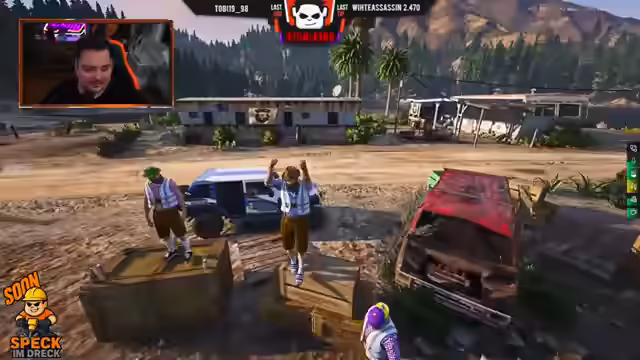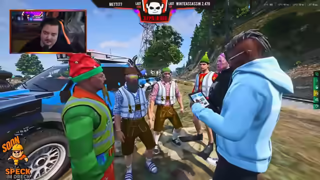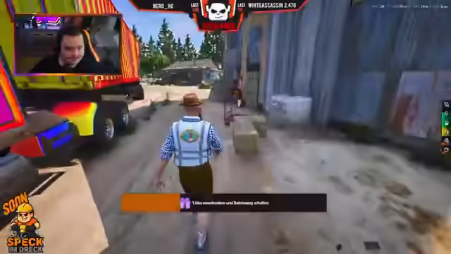 06:14:52Es beginnt mit einer hitzigen Auseinandersetzung über finanzielle Opfer und Waschmaschinen. Die Stimmung ist gereizt, und es fallen vulgäre Ausdrücke. Anschließend wird die Szene von Grenzkontrollen dominiert, bei denen Ausweise verlangt und skurrile Dialoge geführt werden. Es werden Personen kontrolliert, und es kommt zu Diskussionen über die Notwendigkeit von Ausweispapieren. Die Situation eskaliert, als mit Sozialstunden und Wegelagerei gedroht wird. Es entsteht ein Stau, und die Beteiligten überlegen, die Situation zu verlassen, um Ärger mit der Polizei zu vermeiden. Die Ranger scheinen nicht zu intervenieren. Es wird überlegt, die Bullen zu kontaktieren, um die Situation zu bereinigen, da anscheinend nichts los ist. Die Szene wirkt chaotisch und improvisiert, wobei die Charaktere in ihren Rollen aufgehen und die Absurdität der Situation betonen. Die Interaktion mit anderen Charakteren, wie Henry Pilgrim, wird kurz erwähnt, wobei Rohstofflieferungen und allgemeine Höflichkeiten ausgetauscht werden, bevor die Grenzkontrolle fortgesetzt wird. Es wird auch über die Möglichkeit diskutiert, den Weihnachtsmann zu verdienen, was die skurrile Natur des Gesprächs unterstreicht.