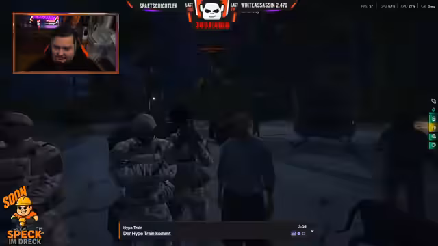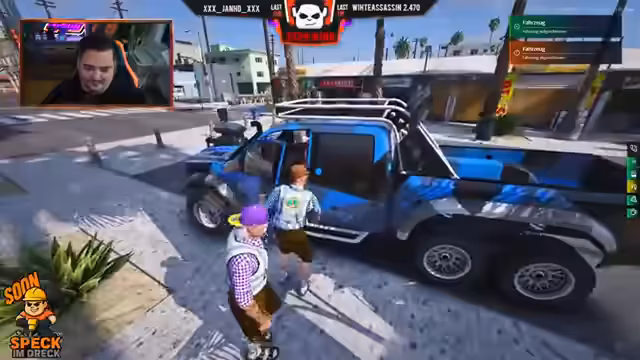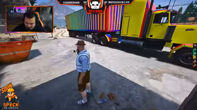 06:16:48Im Stream werden komplexe und oft absurde Rollenspiel-Szenen durchgeführt. Ein zentraler Punkt ist eine wiederholte Grenzkontrolle, bei der der Streamer andere Spieler stoppt und durchcheckt, was zu seltsamen Dialogen und vermeintlichen Gefängnisstrafen wie Sozialstunden führt. Die Szenen sind geprägt von technischen Problemen, da ein Pieper immer wieder den Auspuff blockiert. Die Stimmung ist eine Mischung aus Konfrontation und absurdem Humor, bei der sich die Spieler ständig im Kreis zu bewegen scheinen und dabei Stau verursachen. Gleichzeitig gibt es Andeutungen auf ein Firmengelände und Hinweise auf Streitigkeiten mit anderen Spielern wie Emo.