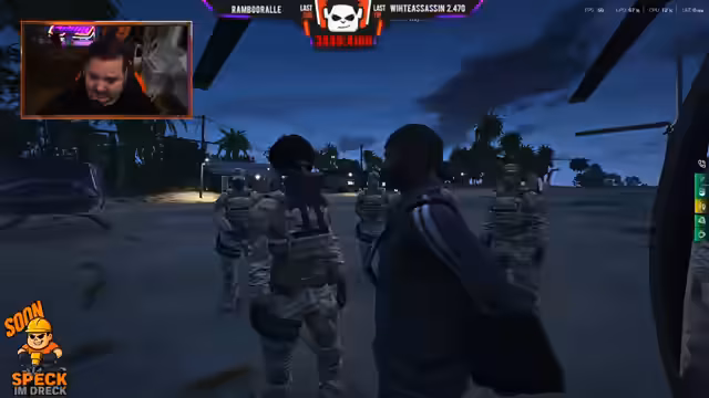 04:33:59Die Kommunikation via Rauchzeichen scheint eine zentrale Rolle im Spiel zu spielen. Der Streamer beschreibt, wie versucht wurde, eine Person namens Todi aufzuspüren, dies jedoch misslang. Eine Person namens Brian berichtet von einem Unfall, bei dem er während des Fahrens auf sein Handy geschaut und durch die Scheibe geflogen ist. Die Stimmung wird durch die wiederholte Aufforderung 'Waffen raus!' aggressiv und auf eine bevorstehende Aktion eingestimmt, bei der nach einem Überfall auf eine Fahrschule gesucht wird.