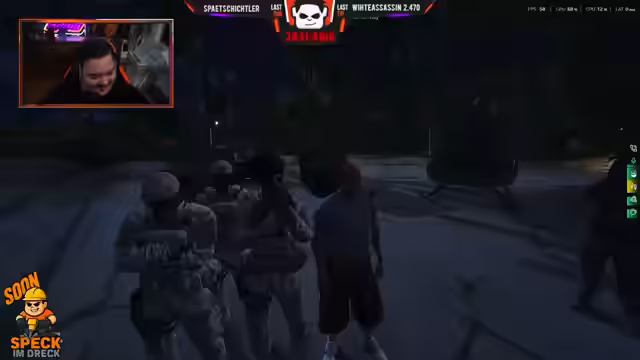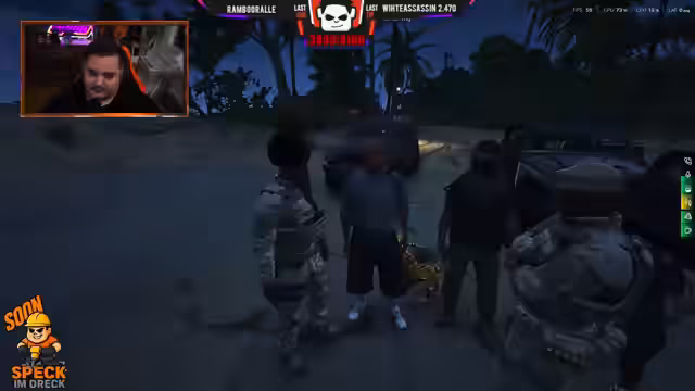 01:53:30Der Streamer beginnt mit der Ankündigung, dass jeder Gruppe die Möglichkeit gegeben wird, ein oder zwei zuverlässige Leute einzustellen. Anschließend wird die Ausbeute aus einem kürzlich durchgeführten PD-Raid (wahrscheinlich ein "Polizeidepartment-Raubzug" in einem Spielkontext) verlesen. Die Beute umfasst verschiedene Waffen wie AMKs, MP5s, eine Otzi und eine Autoclock, sowie Ausrüstung wie Funkgeräte, Handschellen und ein Nagelband. Es folgt eine Aufteilung der Beute unter den beteiligten Gruppen (Transylvanien, ECO, MOB, 8Block), wobei jede Gruppe unterschiedliche Interessen an den verschiedenen Gegenständen äußert. ECO zeigt Interesse an der AMK 47 und der AMKS, während MOB eine MP5 und eine AMKS bevorzugt. Transylvanien äußert ebenfalls Interesse an der MP5. Die Funkgeräte werden unter den Gruppen verteilt. Der Streamer schlägt vor, dass er und ein anderer Spieler (Tsai) zu seinem Schließfach fahren, um die Waffen zu holen, damit die Gruppen sie dann unter sich aufteilen können. Abschließend wird vereinbart, sich in 10 Minuten auf dem Parkplatz zu treffen, um den Austausch der Beute zu koordinieren. Es wird auch erwähnt, dass ein Fahrzeug mit Waffen verloren wurde und dass es während der Aktion Kopfschmerzen gab, da ein Helikopter die Gruppe beobachtete.