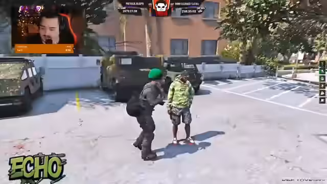 03:54:50Eine Polizeikontrolle stellt eine kritische Situation dar. Die Gruppe wird an ihrem Auto mit falschen Kennzeichen angehalten, was zu einer Konfrontation führt. Es wird über den Fahrzeughandel gesprochen, bei dem beschädigte oder beschlagnahmte Fahrzeuge teuer herzustellen sind, was eine potenzielle Einnahmequelle darstellt. Der Streamer diskutiert die Risiken und die strategische Bedeutung von Fahrzeugen für Operationen und den Handel. Die Kontrolle endet, nachdem die Gruppe die Maskierung abnimmt und sich kooperativ zeigt.
