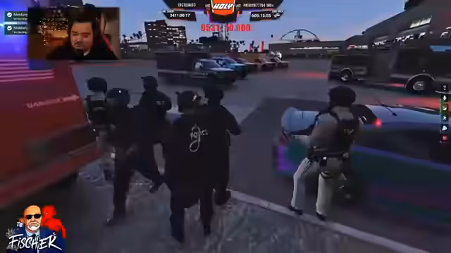 04:22:22Die Gruppe führt einen koordinierten Raid auf die Verwahrstelle der Polizei durch. Das Ziel ist es, hochwertige Fahrzeuge, insbesondere einen f Pickup, zu stehlen. Der Angriff ist komplex und erfordert präzise Aktionen: Mitglieder müssen Autos in die Halle manövrieren, während andere die Eingänge sichern. Der Raid zeigt eine hohe Organisation und Teamfähigkeit, um sich gegen die Bewacher durchzusetzen und die Fahrzeuge sicherzustellen.