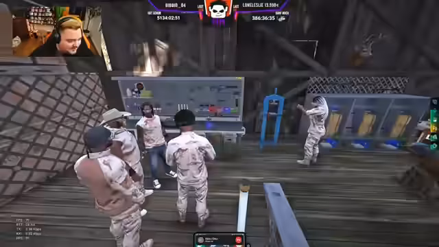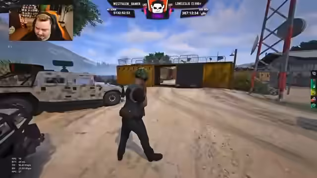 04:00:18Die Gruppe fährt mit dem Purple Raider los und der Streamer ist motiviert. Es kommt zu einem Zwischenfall, bei dem jemand fragt, ob er mitkommen soll, was den Streamer verärgert. Es wird über die Entscheidung gesprochen, ob man mitfährt oder weiter baut. Die Gruppe sieht einen Bär mit einer Waffe und einen Kapitän, was zu einer Diskussion über Kleidung und Aktionen führt.