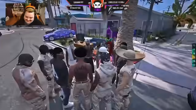 04:02:26Die Gruppe plant, mit Vollteam-Besetzung durch die Stadt zu fahren und überall Bikes und Autos zu platzieren. Es werden Waffen geholt und verteilt. Frank hat den Streamer fast umgefahren, was zu einem adrenalinreichen Moment führt. Der Streamer bittet um Hilfe beim Abräumen und erwähnt, dass er wieder eine Billigknarre benötigt. Die Gruppe ist noch auf der Suche nach Waffen und niemand scheint zu antworten.