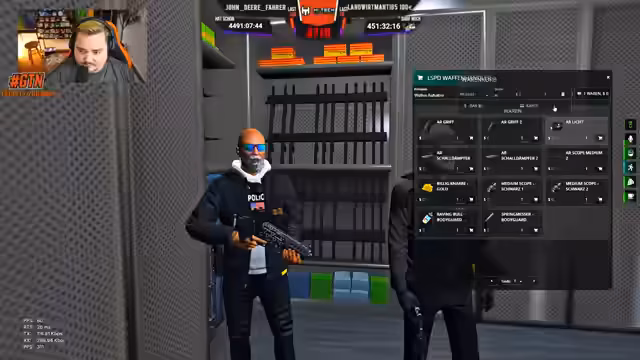 07:43:32Der Streamer präsentiert die umfangreiche Ausrüstung und Fahrzeugauswahl für die verschiedenen Polizeieinheiten. Von Hubschraubern mit Abseilmöglichkeit über Spezialfahrzeuge bis hin zu verschiedenen Waffen wie Blendgranaten und Tasern wird die ganze Bandbreite der verfügbaren Ressourcen gezeigt. Der Fortschrittssystem erlaubt es den Spielern, nach und nach mehr Ausrüstung freizuschalten, was langfristige Motivation schafft. Die realistische Darstellung der Polizeiarbeit wird betont.