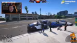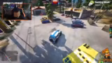 03:40:59Das Team wird von der Polizei verfolgt, was zu einer chaotischen Flucht führt. Es kommt zu Schüssen auf die Reifen des Verfolgers, da es zu einem Missverständnis kam. Die Situation eskaliert, als der andere Fahrer die Situation nicht versteht und der Streamer Angst hat, in die Ecke gedrängt zu werden. Die Flucht ist geprägt von Stress und spontanen Entscheidungen.