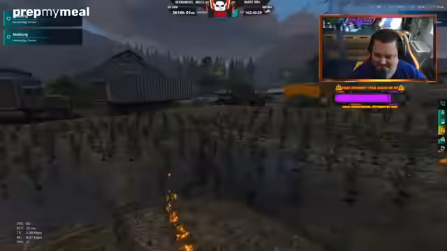 01:09:01Im Spiel Paleto Bay regnet es nicht mehr, da sich die Farmer nicht an die Regeln halten. Der Streamer, der wie ein Pflanzwart agiert, droht den Spielern an, das Regenfeature zu entfernen. Kurze Zeit später schlägt ein Blitz in ein Feld ein, und die Ernte brennt nieder. Bei einem anderen Feuer im Norden von Paleto Bay bittet der Streamer den Chat um Hilfe, da er keine Karte hat.