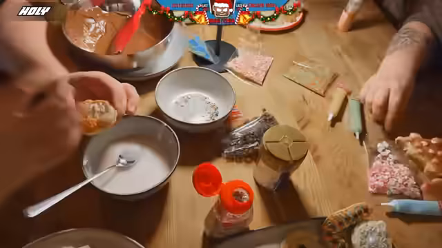 02:33:17Die Verzierungsphase beginnt, bei der die Kekse mit Zuckerguss bemalt und mit bunten Streuseln, Zuckerstiften und Puderzucker verziert werden. Der Streamer zeigt verschiedene Techniken und Materialien für die Verzierung. Gleichzeitig werden Probleme mit der Akkulaufzeit des Mikrofons und der Kamera angesprochen. Die Streamer interagieren mit dem Chat und stellen Fragen über die Verzierungsprozess.