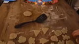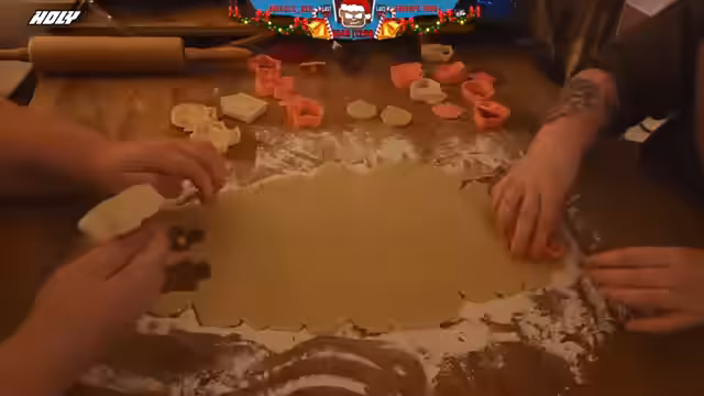 00:49:30Der erste Teig wird ausgerollt und mit verschiedenen Ausstechformen für das Backen vorbereitet. Es werden Formen wie Gryffindor, Slytherin, Rentiere und Engel verwendet. Nachdem die Kekse auf ein Backblech gelegt wurden, kommen sie für zehn Minuten in den vorgeheizten Ofen bei 160 Grad. Währenddesses werden technische Probleme mit der zweiten Kamera gemeldet und die Suche nach einem besseren Stativ für die Zukunft angekündigt.