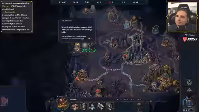 01:35:35Der Streamer beginnt mit taktischen Kämpfen im Spiel. Seine Einheiten sind hauptsächlich Nahkämpfer, speziell Minotauren mit Kampfeslustigen-Attribut. Sie haben eine positive Moral und einen schweren Rammenangriff, der Ziele und alle Kreaturen in der Nähe trifft. Der Streamer stellt fest, dass der Gegner ebenfalls Nahkämpfer ist, was eine Herausforderung darstellt. Er plant seine Züge strategisch, um Verluste zu minimieren.