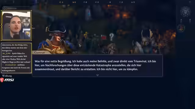 00:40:59Der Streamer beginnt mit dem Gameplay von Heroes of Might and Magic Olden Era. Er stellt klar, dass es sich um die vollwertige Release-Version handelt, nicht um eine Demo. Nach einer kurzen Einführung in die Spielmechaniken und die Geschichte wählt er einen Helden namens Gunnar aus, einen Minotaurus mit speziellen Fähigkeiten. Er erkundet das erste Dorf mit einem mysteriösen, unlöschbaren Feuer und beginnt mit der Mission, die Ursache dafür zu klären, während er langsam die Grundlagen des Spiels erklärt.