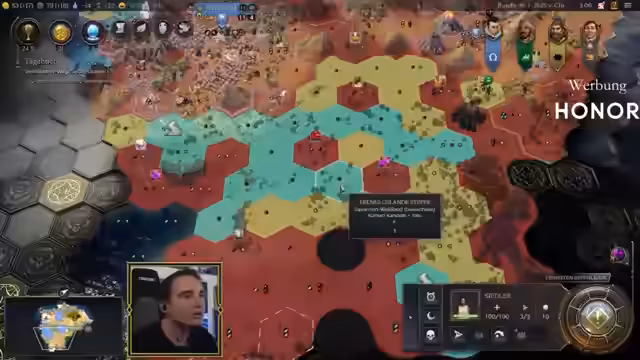 08:09:25Der Streamer spielt mit der Zivilisation Spanien und der Führungs-Machiavelli. Die Strategie ist eindeutig: Maximale diplomatische Kontrolle und Expansion. Dies wird erreicht, indem massenhaft Einfluss gesammelt und alle Stadtstaaten zu Verbündeten gemacht und religiös bekehrt werden. Der Fokus liegt darauf, alle rivalisierenden Zivilisationen diplomatisch zu isolieren und auf Abstand zu halten. Parallel wird Werbung für einen anstehenden Multiplayer-Event gemacht, den 'Ziv-Weltgipfel', bei dem er die eigene Nation repräsentieren und gegen erfahrene Gegner wie Spiffing Brit antreten wird.