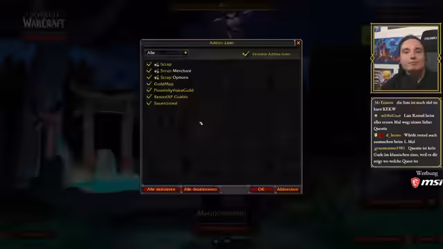 02:23:15Vor dem eigentlichen Spielstart geht der Streamer auf seine Vorbereitung ein. Er installiert einige empfohlene Add-ons wie Rested XP und Questy, ist sich aber unsicher über deren genaue Funktion. Er betont, dass er keinen effizienten Speedgrind anstrebt, sondern entspanntes Spielentdecken möchte, und warnt Zuschauer, die schnelle Fortschritte suchen, dass sie im falschen Stream sind.