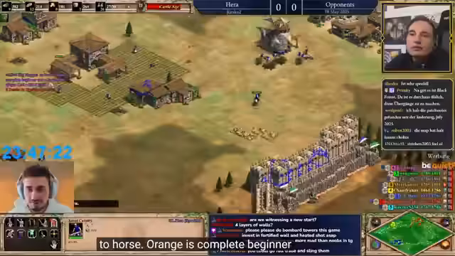 01:23:37Während des Age-of-Empires-Spiels erläutert der Streamer fortlaufend strategische und mechanische Details. Er kommentiert nicht nur Heras Spielstil und den Aufbau von Beziehungen zu Mitspielern, sondern auch das宏观经济 des Spiels. Dabei erwähnt er den Market-Trade-Trick zur effizienten Ressourcengenerierung und die Evolution der Burgmodelle im Laufe der Jahre. Er vergleicht aktuelle Gameplay-Mechaniken mit denen aus der Vergangenheit und zeigt so sein tiefes Verständnis für die Spielstrategie und -ästhetik.