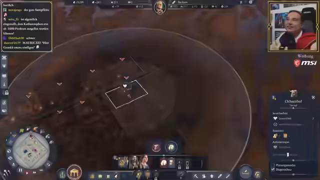 05:46:49Im Spiel steht eine wichtige Entscheidung an, die keltische oder römische Interessen betrifft. Es geht darum, römische Leichen zu bergen, wobei die keltische Piratin Voada die Orte als heilig betrachtet. Der Spieler soll Voada zur Rede stellen. Parallel dazu wird die finanzielle Lage der Siedlung positiv bewertet, was die Besiedlung einer weiteren Insel ermöglichen soll. Es folgt eine humorvolle Überleitung zu Investitionstipps: Es wird empfohlen, in Sumpfland zu investieren, da es bald wertvoll werden könnte, insbesondere wenn die EU Torferden verbietet und getrocknetes Sumpfmoos als Ersatz dienen könnte. Diese Idee wird mit Begeisterung aufgenommen und als 'Sumpfland-Immobilienmarkt-Schlag' bezeichnet. Der Chat wird als sehr angenehm und sich gut ergänzend beschrieben, auch wenn befürchtet wird, dass die Chats sich gegenseitig 'korrumpieren' könnten.