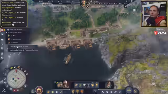 03:48:55Der Anno 117 Koop-Stream beginnt in der Region Albion. Der Streamer und Jen wählen jeweils eine Seite: Der Streamer repräsentiert das römische Imperium, während Jen die keltische Fraktion führt. Die Siedlung wird gemeinsam verwaltet, während das Publikum über die zukünftige Ausrichtung der Siedlung und den Umgang mit der besonderen Geografie, wie dem riesigen Sumpfgebiet, abstimmen kann. Der Koop-Modus wird als positiv empfunden, da er entspanntes Bauen und Quatschen ermöglicht.