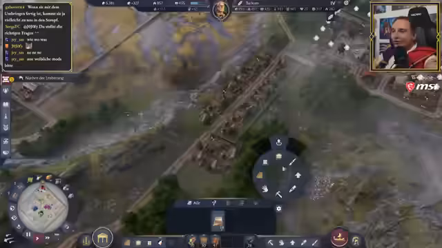 05:22:43Der Streamer berichtet über intensive Spielstunden im Anno 117 mit bis zu 15 Stunden täglich und detailreichem Stadtmanagement. Die Stadt gerät in finanzielle Not, was zum Verkauf des Hauses und Umzug in den Sumpf führt. Dies führt zu Diskussionen über Platzmangel, Symmetrie und die strategische Schwierigkeit, insbesondere in der Albion-Karte, kreisrunde Siedlungen um Radiusgebäude zu platzieren. Eine Rettung durch einen Kaiser-Kredit wird erwartet und finanziell saniert.