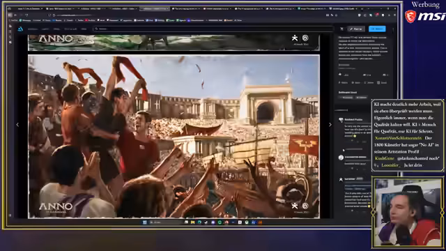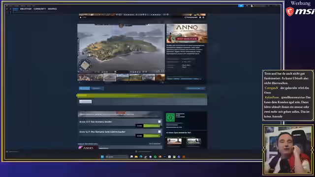 00:42:00Der Streamer wendet sich den Kritikpunkten an Anno 117 zu, die für den aktuell ausgeglichenen Steam-Score verantwortlich sind. Zentral ist die Kritik an der nur zweikapitligen Kampagne, die nach dem ersten Akt in Albion abrupt endet und viele offene Fragen lässt. Des Weiteren wird eine große Anzahl von Multiplay-Bugs angesprochen, die große Ränkespiele unmöglich machen, sowie der Fund eines von KI erstellten Ladebildschirms, der als unprofessionell und qualitativ minderwertig angesehen wird.