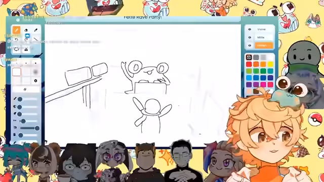 01:02:34Zu Beginn des Streams stellt die Streamerin fest, dass sie als Mitspielerin und nicht als Gastgeberin fungiert, was sie zunächst verwundert. Das Hauptziel ist das gemeinsame Zeichnen einer Gruppe von Spielern. Die Streamerin konzentriert sich darauf, alle Teilnehmer in einem gemeinsamen Bild unterzubringen und stellt fest, dass die Aufgabe anspruchsvoll und hardcore sei. Sie stößt jedoch auf technische Hürden wie eine versehentlich aktivierte Stabilisierung, die das Zeichnen von Details unmöglich macht, und den Mangel an einem Fill-Tool, was die Kolorierung deutlich erschwert.