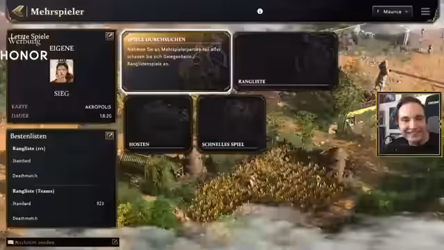 00:15:10Maurice startet den Stream zu ungewohnter Zeit und begrüßt die Zuschauer sowie die Mitspieler PietSmiet (Sepp), Bonjwa (Leon) und Maxim. Es gab anfängliche Soundprobleme, die jedoch schnell behoben wurden. Die Teilnehmer tauschen sich über ihre Müdigkeit aufgrund der frühen Stunde aus, wobei Maurice und Sepp als Väter besonders betroffen sind. Es wird diskutiert, wie sie sich im Spiel Age of Mythology verbinden können, da Leon das Spiel über den Microsoft Store und nicht über Steam besitzt. Sie überlegen, eine Lobby zu erstellen und In-Game-Freundschaften zu schließen, um das Problem zu umgehen. Maurice schickt eine Twitch-Zusammenarbeitsanfrage und es wird festgestellt, dass Leon auf dem Bonjwa-Chill-Account ist. Die unterschiedlichen Lebensrealitäten der jungen Junggesellen (Leon und Maxim) und der Familienväter (Maurice und Sepp) werden humorvoll thematisiert. Abschließend wird beschlossen, dass Maurice ein Spiel mit Passwort eröffnet, um ungestört spielen zu können.
