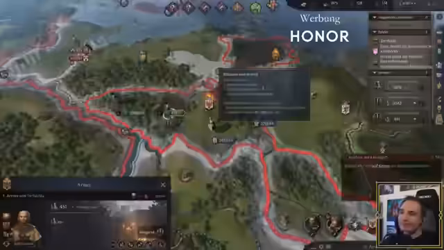04:53:01Es wird versucht, den Feind zu teilen und zu herrschen. Die Armee von Florenz und die Engländer kommen. Das Kaiserreich wird stehen. Es wird Geld benötigt. Es wurde vorher schon etwas gegeben, aber jetzt ist alles in Söldner investiert worden. Die beiden Familien werden keine Freunde mehr. Der Feind ist in eine bereits verlorene Schlacht gerannt. Es wird überlegt, auf Trump zu leben. Es wird Jen um Geld gebeten. Es könnte ein Neuanfang sein. Es wird überlegt, wie Hamburg wieder zurückgeholt werden kann. Es wurde ein super wichtiger Kriegsgefangener aufgegeben, ohne es zu checken. Die Verbündeten sind da. Es werden Hauptstädte erobert. Der Anführer ist Österreich. Crusader King 3 gibt es im Game Pass. Es wird ein Zeitvertrag geschlossen. Es ist geiler, weil man die ganze Zeit im Fokus ist. Im Singular ist das Spiel sehr entspannt. Die Rebellenfraktion wurde aufgelöst, indem der ermordet wurde, den sie auf den Thron bringen wollten. Es muss schnell ein Nachkomme gezeugt werden, bevor Jen wieder mit ihrem Dolch ansetzt.