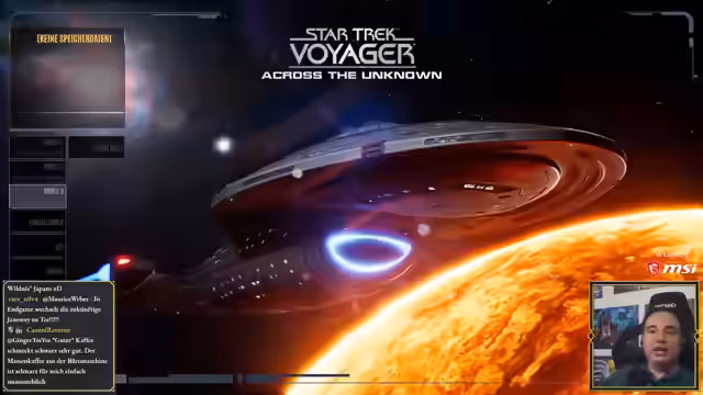 02:57:16Nach einer Ankündigung zu einer potenziellen Redakteursstelle beginnt der gesponserte Gameplay-Teil mit dem Spiel Star Trek Voyager Across the Unknown, einem Survival-Strategiespiel für PC, Playstation, Xbox und Switch 2. Der Streamer betont die Wichtigkeit der Unterstützung durch die Community, die durch das Anklicken der bereitgestellten Links erfolgt, und stellt humorvoll in Frage, ob er nach seinen diversen Ausrutschern überhaupt noch Sponsoring von Spielefirmen erhält.