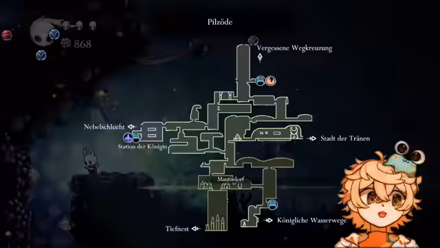 00:10:45Zurück im Spiel kämpft der Streamer sich durch die Untergründe und besiegt die Mantisse. Er äußert Respekt für die Zuschauer, die dies ebenfalls geschafft haben. Auf der Suche nach dem nächsten Gebiet erkundet er eine Gegend, die aussieht wie ein Gelddorf, wo er nur Bonus-Geld findet. Nachdem er alles gesammelt hat, wird er in ein weiteres Gebiet namens Pilzöde geleitet.