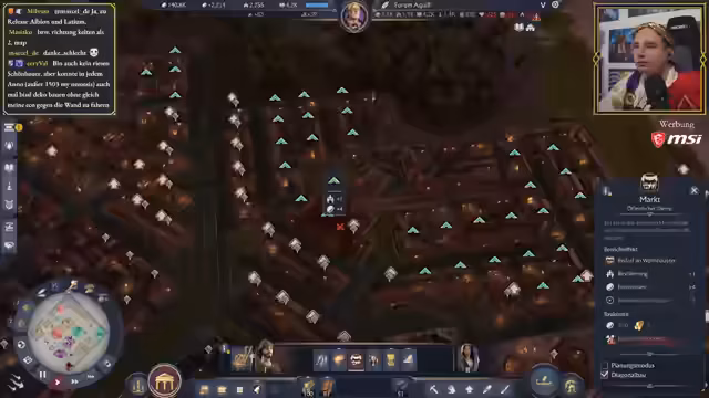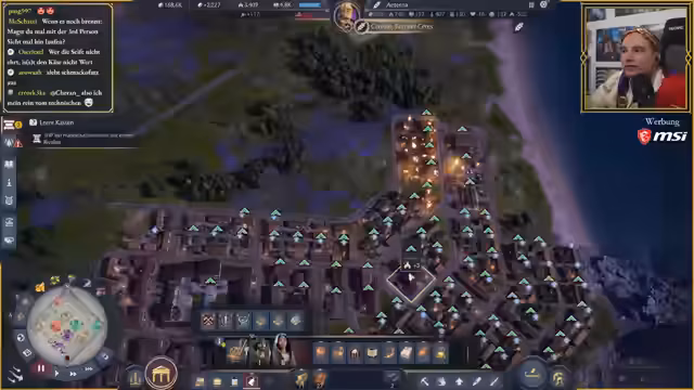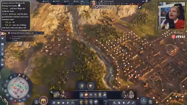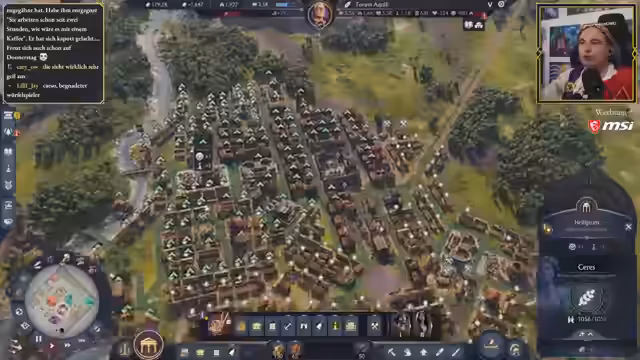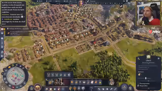 01:05:33Der Streamer arbeitet daran, die Stadt weiter zu entwickeln, indem er mehr Wohnhäuser und Infrastruktur baut. Er äußert seine ambivalente Haltung zu den Zufriedenheitsmechaniken in Anno 117, die er für zu negativ empfindet. Gleichzeitig zeigt er verschiedene Bau- und Designentscheidungen auf, wie das Organisieren der Stadt entlang natürlicher Gegebenheiten und die strategische Platzierung von Gebäuden wie Villen und Marktplätzen, um Boni zu maximieren.