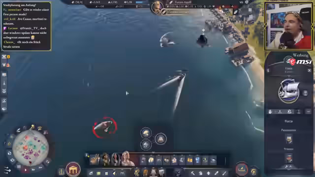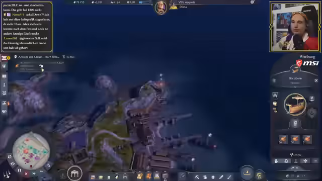 08:59:24Der Streamer konfrontiert wiederholt Piratenangriffe, insbesondere von Syrakus, und entsendet Militärflotten zur Verteidigung. Er errichtet eine Belagerungswerkstatt, um Onager (Belagerungswaffen) zu produzieren, wie es vom Kaiser gefordert wird. Dabei kombiniert er militärische Aktionen mit wirtschaftlicher Entwicklung, indem er Handelsschiffe mit Spezialisten ausrüstet.
