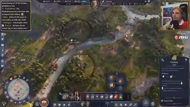 00:58:09Der Streamer beginnt mit dem Spielen von Anno 117 und präsentiert seine bestehende Siedlung am Flussufer. Er erklärt die langfristigen Pläne für zwei gleichwertige Inseln, die sich gegenseitig mit Ressourcen versorgen sollen. Seine kurzfristigen Ziele umfassen das Freischalten der dritten Bevölkerungsstufe und den Bau von Aquädukten. Er identifiziert akute Probleme wie unzureichende Arbeitskraft und plant die Stadt gezielt zu erweitern.