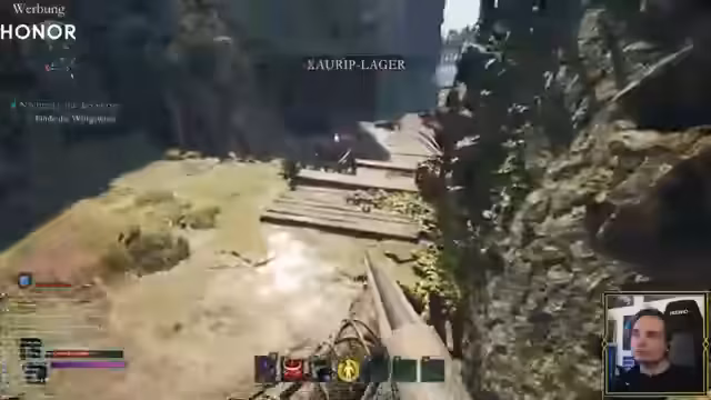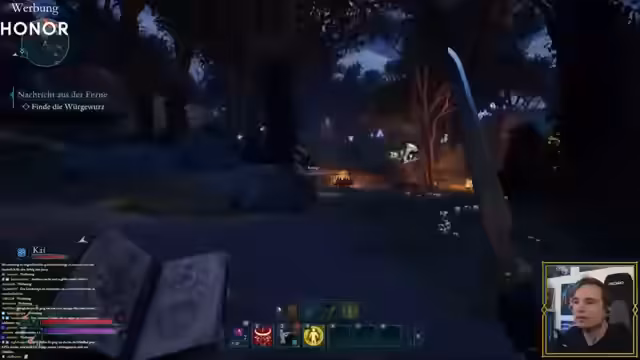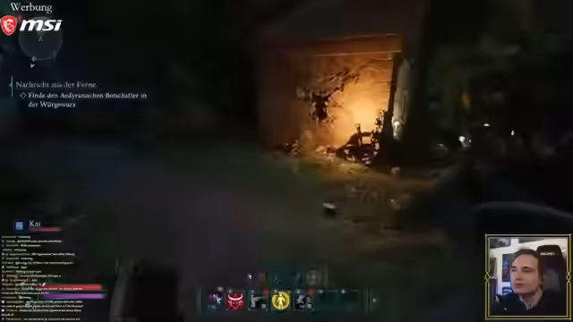 04:07:38Nachdem der Streamer die Hauptquest fortgesetzt hat, begibt er sich in ein als gefährlich eingestuftes Gebiet. Er stellt fest, dass der Tag-Nacht-Zyklus im Spiel sichtbar ist, und nutzt einen Feuerzauber zur Beleuchtung. Er bekämpft Gegner, darunter einen Feind mit einem heilenden Schild, den er zuerst eliminieren muss, und bewegt sich dabei strategisch, um taktische Vorteile zu erlangen.