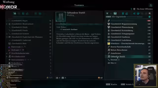 01:40:07Der Fokus verschiebt sich zur Erkundung der Spielwelt, wobei der Streamer sein Inventar mit Tränken, Essen und Gegenständen für Crafting bestückt. In einem Shop wird Ausrüstung bewertet und optimiert; die anfängliche Rüstung wird als unzureichend angesehen und durch eine Kettenrüstung ersetzt, die einen besseren Kompromiss zwischen Schadensreduktion und Ressourcenverbrauch bietet. Kaufentscheidungen werden getroffen, um das Spielziel zu verbessern, und es werden unterschiedliche Waffentypen ausprobiert, wie Pistolen, die für einen potenziellen 'Pistolenmagier'-Build getestet werden, der Magie und Fernkampf kombiniert.