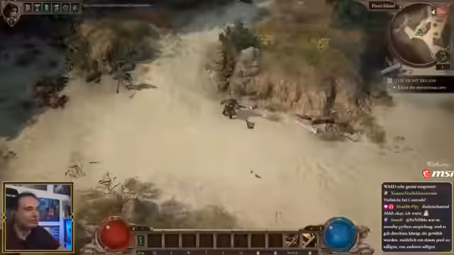 05:10:00Nach der Wahl des Skillbaus beginnt der Streamer, neue Fähigkeiten wie 'Lethal Strike' und 'Shadow Strike' zu nutzen. Er ist begeistert von der instantanenen Nachladung von 'Lethal Strike' nach einem Kill, was den gewünschten dynamischen Kampfflow erzeugt. Er erkundet die Startinsel, interagiert mit der Mentorin Minthara und einem Händler namens Maro. Dabei wird ein Dolch mit Blitzschaden gefunden, der perfekt in seinen Build passt und die Kampfdynamik weiter verbessert.