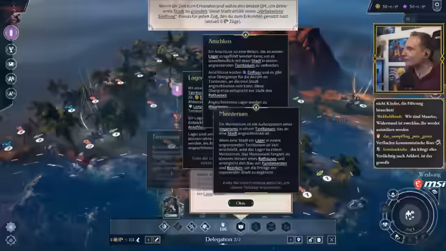 02:52:03Nach der verlustreichen Schlacht konzentriert sich der Streamer auf den Wiederaufbau seiner militärischen Stärke. Er rekrutiert neue Einheiten, darunter einen Nahkämpfer, und forscht in den Technologien 'Werkanlagen' und 'Kampftechnologien', um seine Verteidigung zu stärken. Die diplomatischen Beziehungen zu den Lords bleiben angespannt, werden aber durch eine Geste des guten Willens etwas verbessert.
