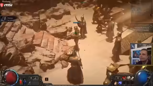 01:34:00Es wird betont, dass dies das erste Mal ist, dass Nahkampf in Path of Exile 2 gespielt wird. Zuvor wurden Streams mit einer Minion Witch und einer Waldläuferin (Fernkampf) gespielt. Es wird die Schwierigkeit hervorgehoben, dass man sich als Nahkämpfer in Gefahr begeben muss, und die Unsicherheit darüber geäußert, ob diese Spielweise gefällt. Es wird eine Kampfsituation beschrieben, in der man stehen bleiben muss, um Angriffen auszuweichen, was jedoch riskant ist, da man dadurch verwundbar wird. Der Bossgegner wird als unerwartet schwierig beschrieben, da man ihm ausweichen und in sicherer Entfernung stehen bleiben muss. Das Ausweichen wird als Counterplay dargestellt, bei dem es wichtig ist, nicht in der Nähe des Gegners zu sein, wenn dieser seine Fähigkeiten einsetzt. Es wird erwähnt, dass der Nahkampfgegner schwer auszuweichen ist und Heiltränke verbraucht. In der zweiten Phase des Kampfes wird es als besonders schwierig beschrieben, Trankladungen zu sparen und gleichzeitig den Angriffen auszuweichen. Es wird festgestellt, dass ein passives Trankaufladen nicht ausreichend ist und der Gegner Flächenschaden verursacht, was die Situation zusätzlich erschwert. Es wird die Notwendigkeit betont, in der ersten Phase besser auszuweichen, um Trankladungen für die zweite Phase zu sparen.