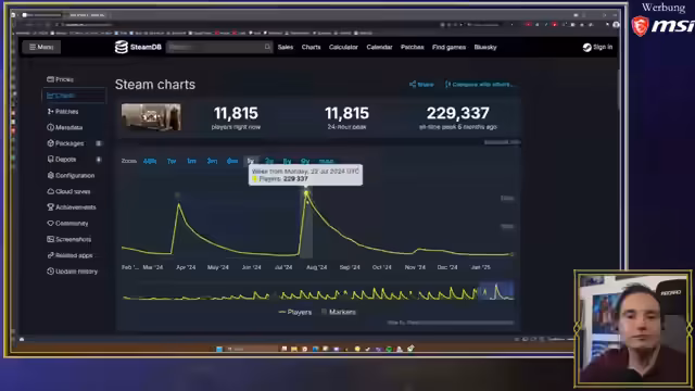 00:30:14Der Streamer analysiert die Spielerzahlen von Path of Exile 2 und vergleicht sie mit anderen Titeln. Path of Exile 2 startete mit etwa 600.000 gleichzeitigen Spielern und liegt aktuell noch bei etwa 156.000, was für das Genre als relativ stabil gilt. Im Vergleich verlor Path of Exile 1 innerhalb von zwei Monaten zwei Drittel seiner Spieler, während andere Spiele wie Total Warhammer oder Elden Ring ähnliche Abwärtstrends zeigen. Der Streamer betont, dass solche Verluste im Gaming-Markt normal sind und hält Path of Exile 2 bislang für einen Erfolg.