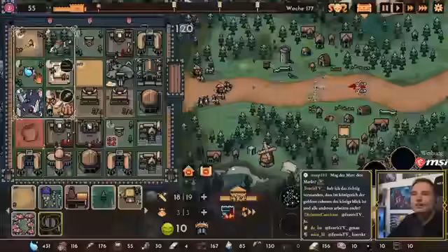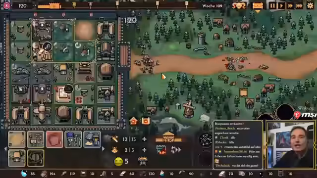 00:11:49Der Stream startet mit einer Begrüßung zum Thema 'königliches Burgverteidigen', wobei das Spiel 'The King is Watching' im Mittelpunkt steht. Der Streamer berichtet über seine Erfahrungen mit einer Mission, in der er versuchte, Ressourcen dezentraler abzubauen, was zu Problemen mit Transporten und vollen Lagern führte. Er diskutiert mögliche Gründe wie unzureichende Transporter in der Stadt und die Auswirkungen auf Handel und Preise.