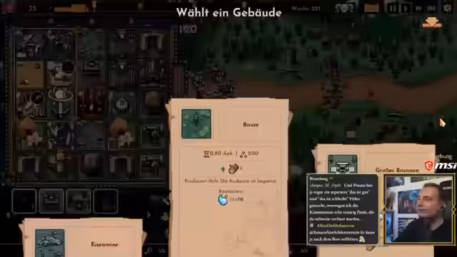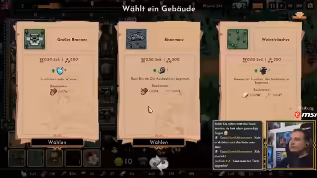 03:28:55Der Streamer beginnt mit der Bewertung verschiedener Einheiten in der 'Schwertkampfkaserne'. Er entscheidet sich nach einer Abwägung von Kosten und Stärken für 'Schwertkämpfer', die mit 80 Leben und 13 Schaden den 'Skeletten' mit nur 45 Leben überlegen sind, da Eisen als Ressource im Überfluss vorhanden ist. Zusätzlich erwägt er den Bau einer 'Katapultfabrik' und erkundet die Ressourcenproduktion am 'Feenbrunnen', der nach dem Zufallsprinzip eine beliebige Ressource generiert. Der Fokus liegt auf dem Aufbau einer effizienten Truppen und der Sicherung grundlegender Ressourcen wie Holz, Eisen und Wasser.