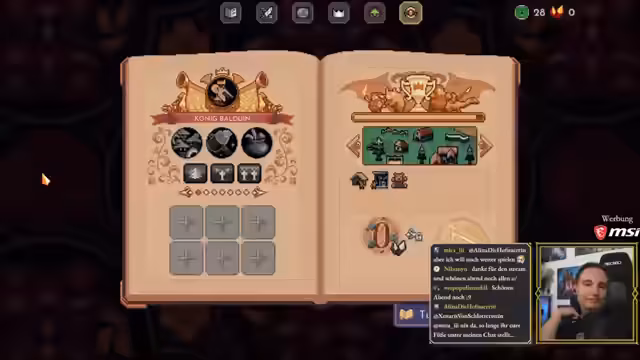 03:39:53Nach der erfolgreichen Bosskämpfe werden spielbare Charaktere wie König 'Leo der Weise' und 'König Spellus' vorgestellt, jedoch kann der Streamer nur mit 'König Balduin' starten. Die erste Spielrunde beginnt im 'Einfachen Modus' gegen den 'Kobold Kriegsherrn Gorzok'. Der Streamer priorisiert den Bau von 'Bauernhütten' für die Grundtruppe und einer 'Eisenmine', um 'Armbrustschützen' rekrutieren zu können. Er testet verschiedene Händleroptionen und entscheidet sich für Kombinationen, die Ressourcen wie 'Denari' oder '25 Eisen zu Beginn jeder Welle' bieten, um seine Infrastruktur zu stärken.