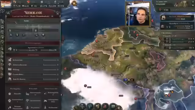 01:31:44Auf Nachfrage zu den Pen & Paper-Events bestätigt der Streamer, dass Alcarion ein One-Shot-Gastauftritt war, ihm aber sehr viel Spaß machte. Bei Gelegenheit würde er gerne weiterspielen. Der Fokus verlagert sich anschließend auf die Wirtschaftssimulation Victoria 3. Luxemburg wird als kapitalistische Monarchie gespielt, die Belgien einverleibt hat, um Wohlstand zu schaffen. Das Volk wird durch Bleiminen und Industrie zufrieden gestellt, um Radikale einzudämmen.